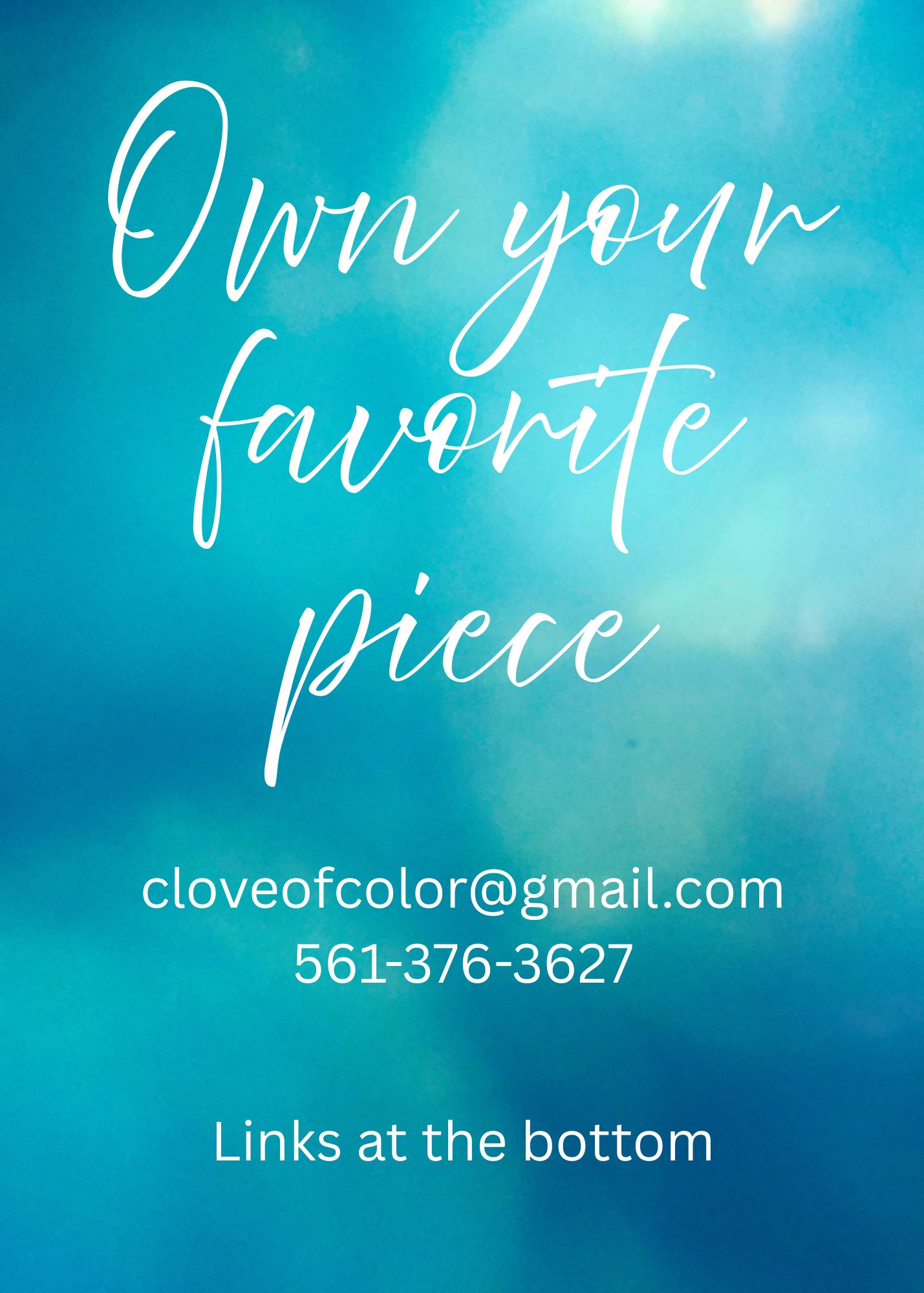 Choose your favorite and call or email me to own it. Links at the bottom of the page
